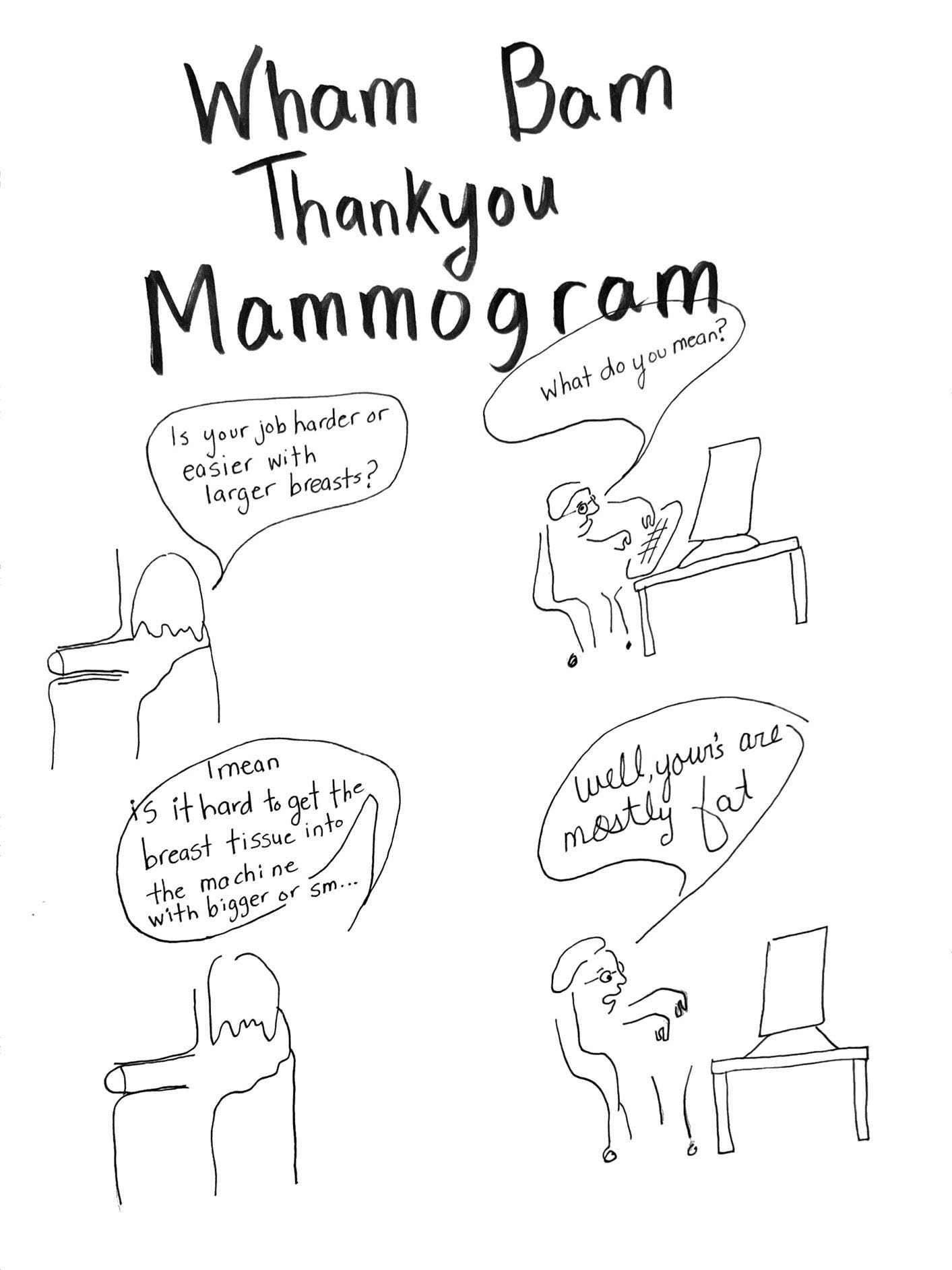 This one is about mammograms. The waiting, the worry, the hum of anxiety that starts weeks before and never really leaves. About the family histories that feel stitched into the tissue itself, cancer stories passed down like something you inherit without asking. About standing half-naked in a cold room while a machine squashes your breast flat, searching, scanning, deciding. About the kind and blunt women who confidently run the machines and administer care.